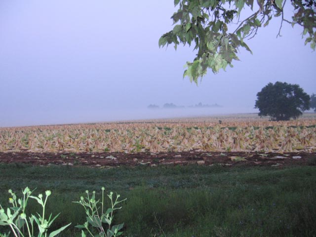 Typical late summer view of cut tobacco in the fog - Combs Ferry Road |