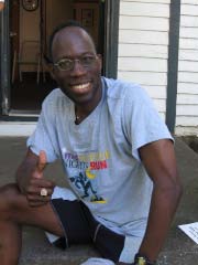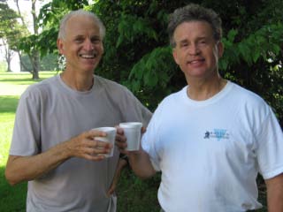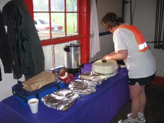 Collins and George Mason enjoy a caffeine pickup after 13 miles